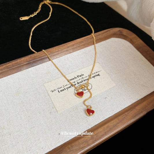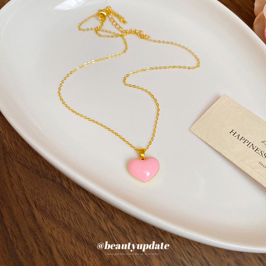 A廠【HN8954】滴油愛心吊墜項鍊韓系ins小眾清新甜美鎖骨鏈簡約高級感百搭項鍊 25.05-5