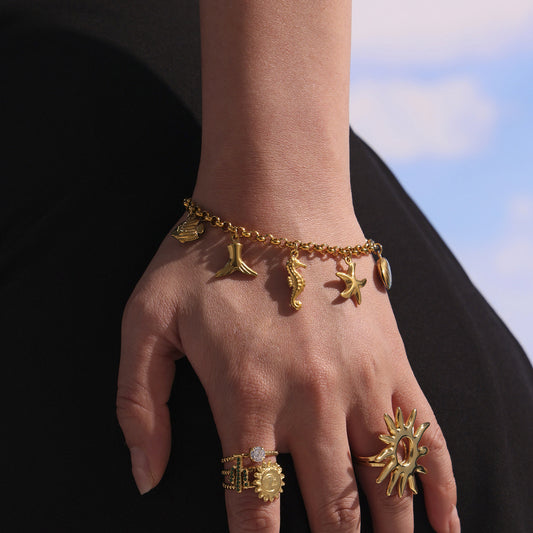B廠【E621】海洋系列海星貝殼DIY多配件空心吊墜手鍊不鏽鋼材質鍍18k金 25.05-5