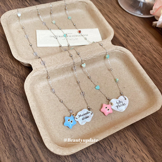 A廠【HN8947】多巴胺星星粉晶吊墜項鍊海邊度假風鎖骨鏈甜美小清新氣質項鍊飾 25.05-5