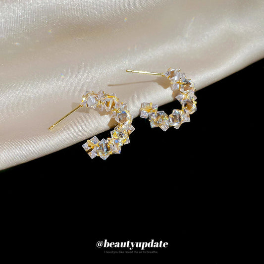 A廠【HE26679】銀針鋯石C形幾何圓圈耳環個性簡約百搭耳環小眾輕奢高級感耳飾女 25.05-5