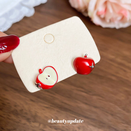 A廠【HE26551】銀針滴油不對稱紅色蘋果耳環2025新款耳環清新甜美耳飾小眾高級感 25.05-5