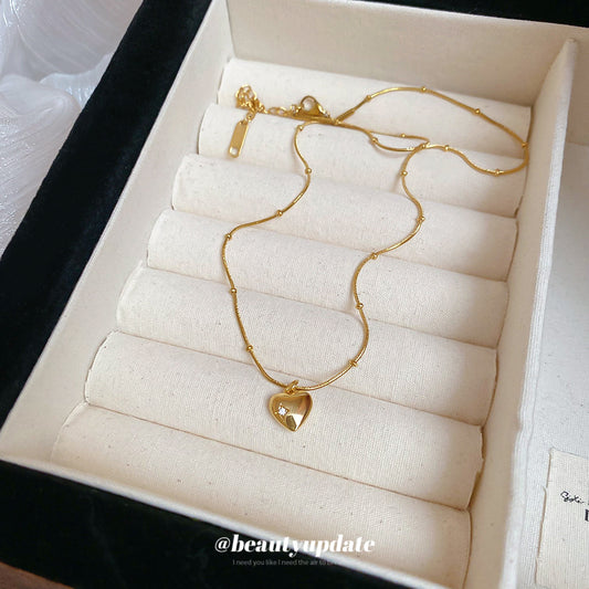 A廠【HN9035】鈦鋼鋯石愛心吊墜項鍊歐美輕奢小眾新款鎖骨鏈時尚高級感氣質頸鍊 25.06-1