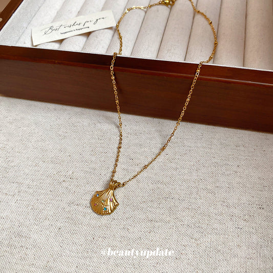 A廠【TN62】鈦鋼鑲鑽貝殼吊墜項鍊復古小眾精緻百搭鎖骨鏈輕奢高級感項鍊飾 25.06-1