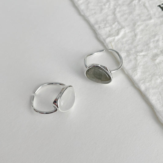 F廠【DQ8006R】S925純銀天然月光石白水晶戒指女韓版高級感雙層珍珠疊戴指環 25.06-1