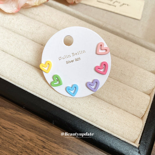 A廠【HE26614】925銀針彩色愛心鏤空耳環多巴胺小眾ins甜美耳環小清新氣質耳飾 25.06-1