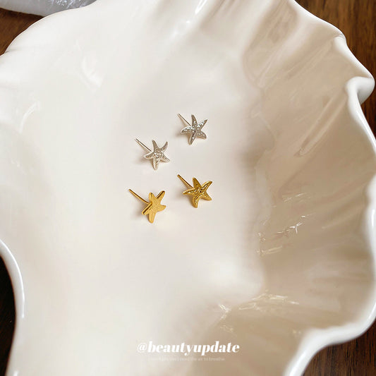 A廠【HE26894】925銀針褶皺路海星耳環女海邊度假風耳環輕奢高級感耳飾設計感小眾 25.06-1