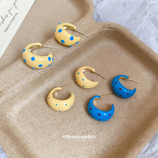 A廠【HE26970】925銀針滴油斑點C型耳環早春新款百搭耳環高級感氣質耳飾設計感小眾 25.06-1