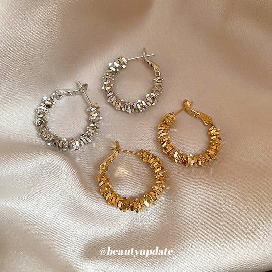 A廠【HE26896】925銀針碎銀不規則耳圈個性簡約冷淡風耳環輕奢高級感耳飾設計感小眾 25.06-1