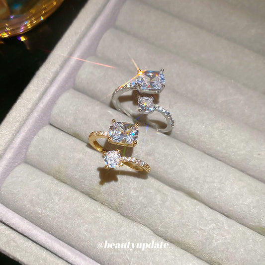 A廠【HR2604】鋯石方形交叉開口戒指新款精緻潮流百搭食指戒輕奢高級感指環 25.06-2