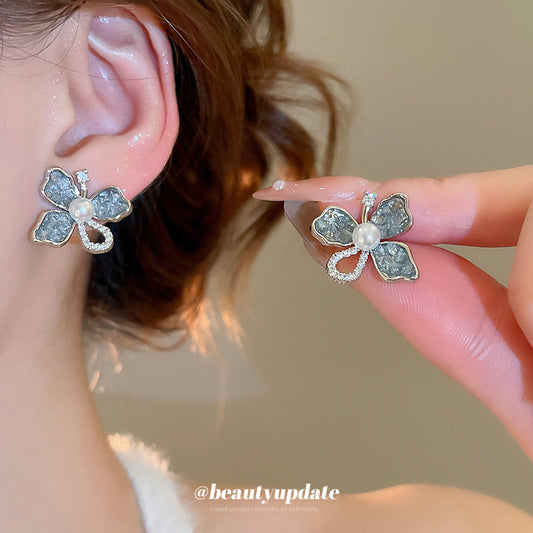 A廠【HE26947】925銀針珍珠水晶花朵耳環輕奢高級感耳環2025新款爆款耳環設計感小眾 25.06-2