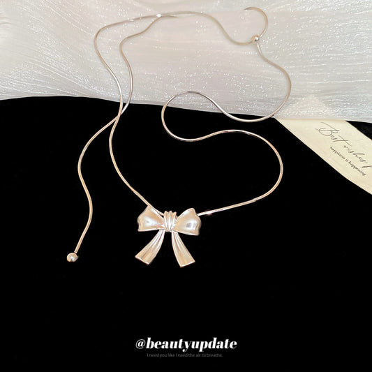 A廠【HN8962】韓國ins部落客同款蝴蝶結吊墜項鍊2025新款鎖骨鏈小眾設計感項鍊女 25.06-2