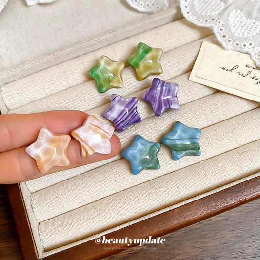 A廠【HE26962】925銀針彩色暈染星星耳環小清新百搭耳環甜美簡約高級感通勤少女耳環 25.06-2