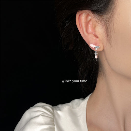C廠【6247】設計師款~個性甜酷風ins925銀針滴油粉色膠囊打針耳飾女新款耳環 25.06-2