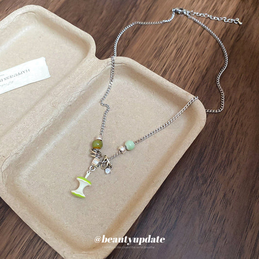 A廠【HN8911】鈦鋼滴油陶瓷蘋果核吊墜項鍊小清新個性簡約鎖骨鏈小眾設計感頸鍊 25.06-2