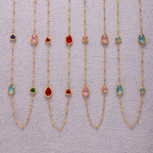 B廠【TXP265】不鏽鋼飾品閃亮水滴切面捷克玻璃石長項鍊歐美小眾設計感 25.06-2