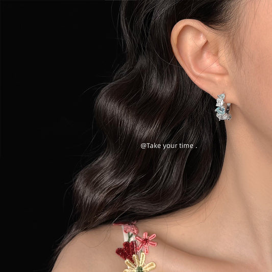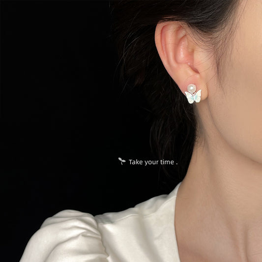C廠【6231】森系小清新琺瑯滴釉小蝴蝶蝴蝶斑耳飾女改為藍色新款耳環女 25.06-2