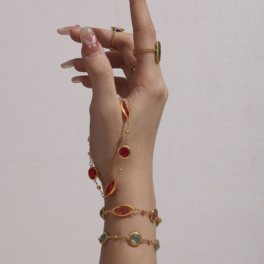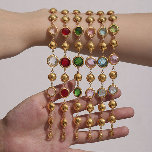B廠【TXE278】歐美捷克切面圓玻璃石包邊手鍊女輕奢高級感不銹鋼手飾 25.06-2