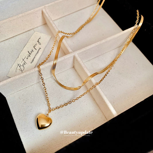 A廠【TN63】鈦鋼雙層愛心吊墜項鍊歐美跨境小眾設計感鎖骨鏈輕奢高級感項鍊飾女 25.06-2
