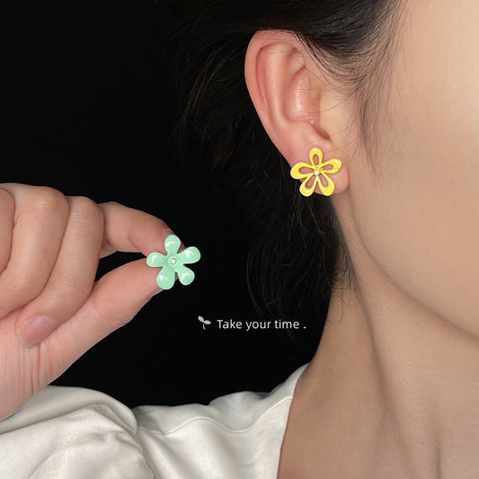 C廠【6241】多巴胺撞色不便宜AB款烤漆糖果色鏤空耳釘可愛新款耳飾女 25.06-2