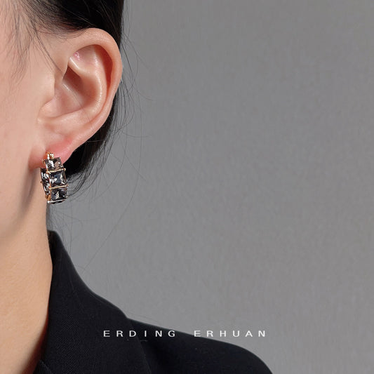 C廠【2453】法式輕奢風灰色玻璃水晶耳環個性百搭高級感小眾方糖耳環 25.06-2