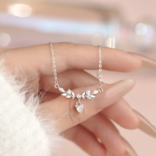 E廠【YC1623N】S999足銀樹葉愛心項鍊簡約清新文藝溫柔甜美韓風鎖骨鏈 25.06-3