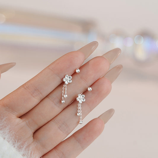 E廠【YC2133E】S999足銀簡約花朵流蘇彎鉤螺絲耳環女氣質文藝甜美可愛耳環 25.06-3
