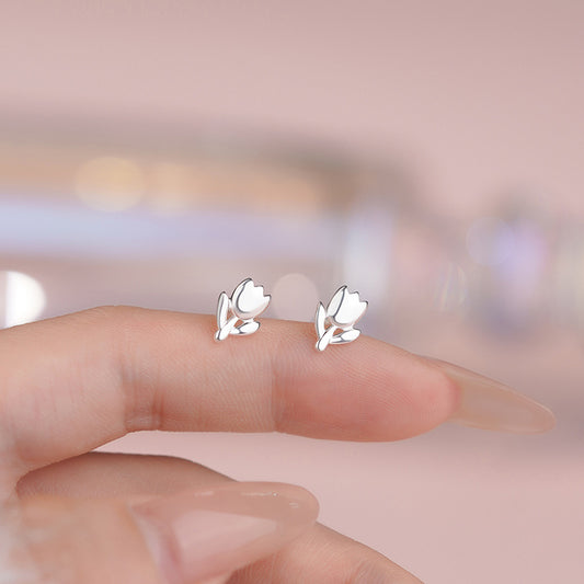 E廠【YC9204E】999足銀甜美鬱金香螺絲耳環女文藝森系百搭溫柔清新耳飾 25.06-3