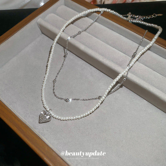 A廠【HN9286】珍珠愛心吊墜雙層項鍊時尚簡約小眾設計感鎖骨鏈輕奢高級感頸鍊女 25.06-4