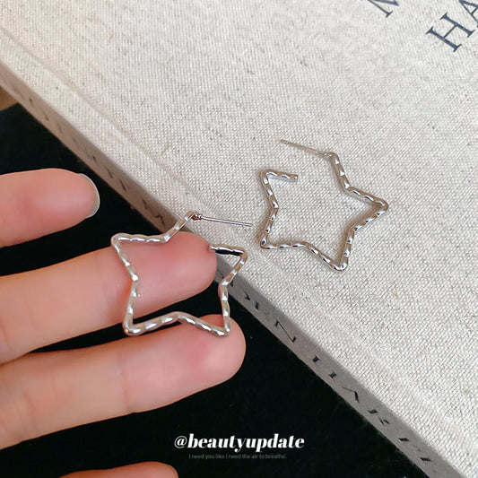 A廠【HE27494】925銀針紋路星星吊墜耳環歐美跨國時尚簡約百搭耳環小眾設計感耳飾女 25.06-4