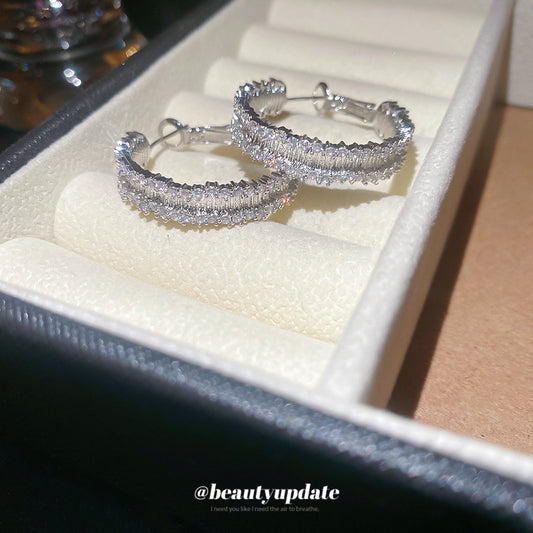 A廠【WE3214】925銀針鋯石紋理耳圈時尚簡約冷淡風百搭耳環精緻輕奢高級感耳飾 25.06-4