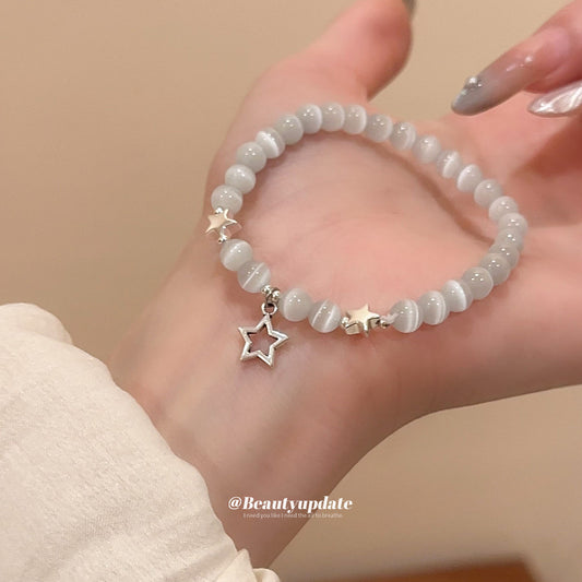 A廠【HB4147】貓眼石串珠星星吊墜手鍊夏日小清新時尚簡約手串手環小眾設計感女 25.06-4