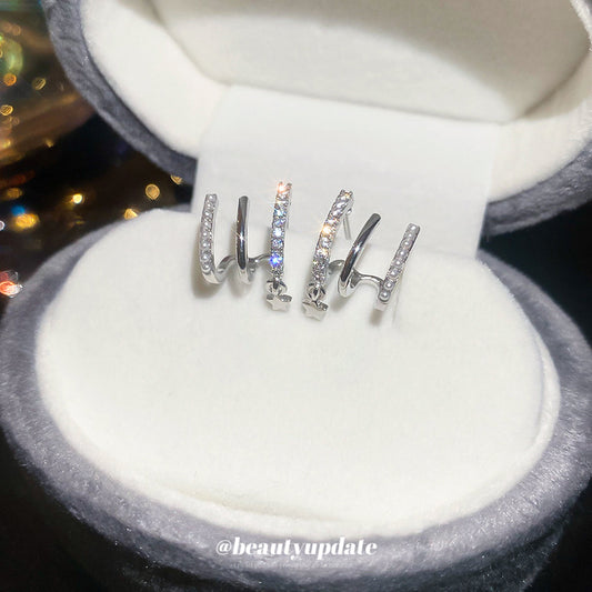 A廠【HE27395】925銀針鑲鑽光面五角星耳環韓系小眾精緻簡約耳環輕奢高級感耳飾時尚 25.06-4