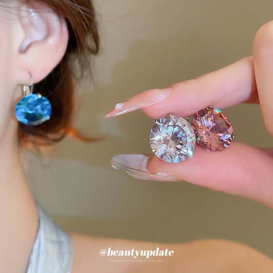 A廠【HE27374】法式鋯石切面圓形吊墜耳環優雅耳鉤耳環百搭小眾耳飾輕奢高級感女 25.06-4