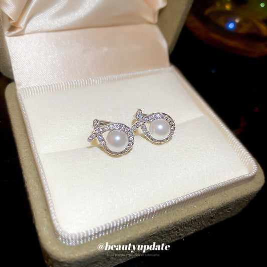 A廠【HE27439】鋯石交叉水滴珍珠耳扣簡約耳環耳環輕奢高級感耳飾設計感小眾 25.06-4