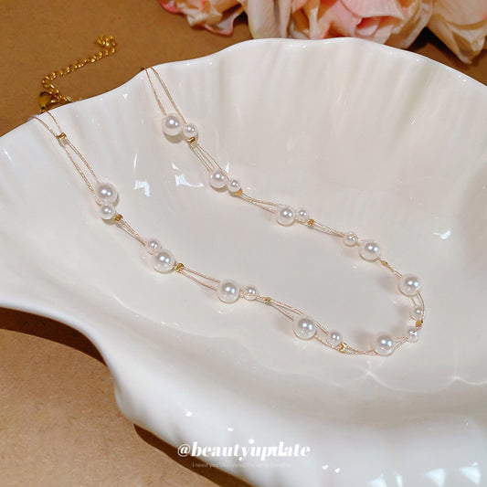 A廠【WN1095】珍珠串珠雙層項鍊時尚簡約百搭鎖骨鏈輕奢高級感頸鍊設計感小眾女 25.06-4