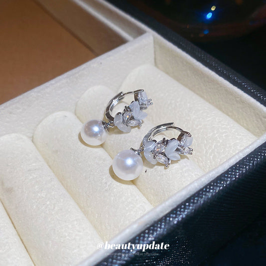 A廠【HE27441】925銀針鋯石蝴蝶結珍珠吊墜耳環時尚小眾設計感耳環輕奢高級感耳飾女 25.06-4
