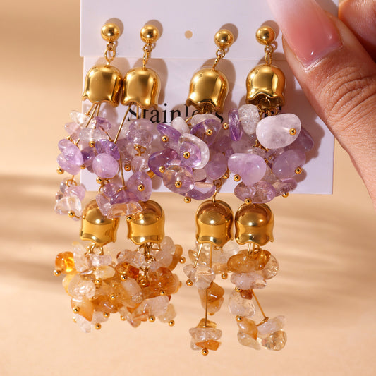 B廠【F1423】天然石流蘇耳環不鏽鋼18k鍍金不掉色飾品歐美時尚設計新款 25.07-1