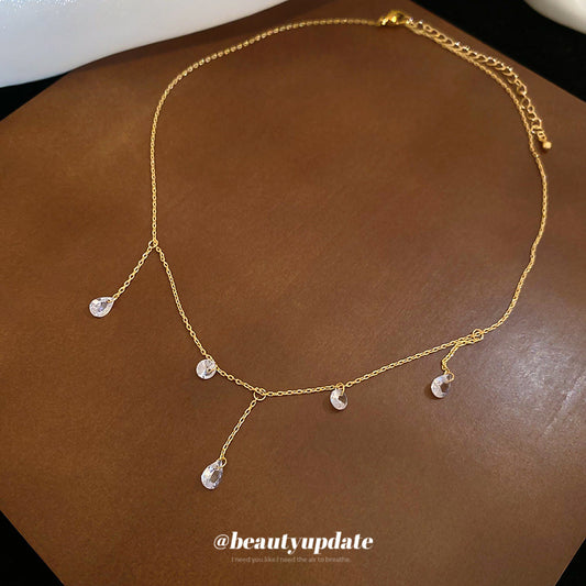 A廠【HN9085】鋯石水滴流蘇項鍊歐美跨境時尚簡約百搭氣質鎖骨鏈輕奢高級感頸鏈 25.07-1
