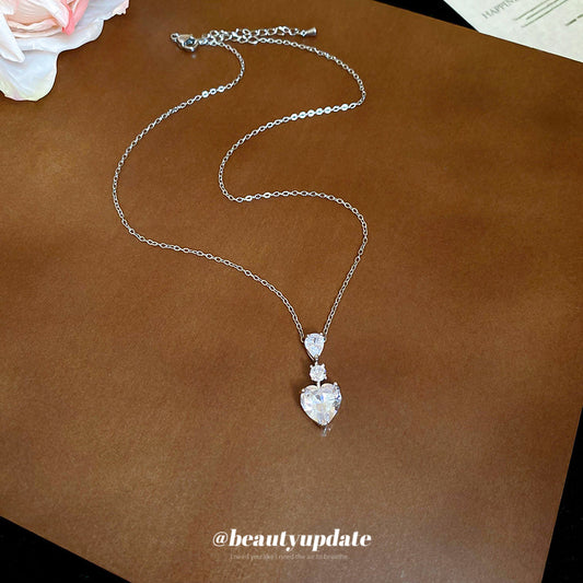 A廠【HN9394】愛心水滴鋯石吊墜項鍊時尚簡約百搭氣質鎖骨鏈精緻輕奢高級感頸鏈 25.07-1