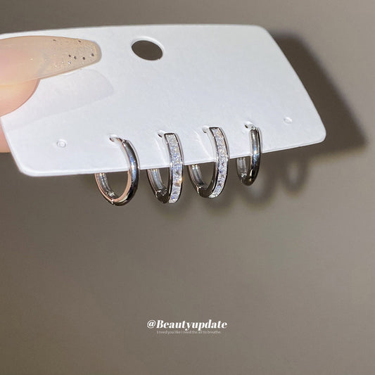 A廠【HE27540】方形鋯石幾何圓圈耳扣四件組時尚簡約百搭氣質耳環輕奢高級感耳飾 25.07-2