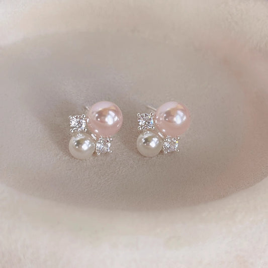F廠【DQ11280E】法式溫柔粉泡泡仿珍珠耳環女S925純銀淡粉色精緻高級感耳飾潮 25.07-2
