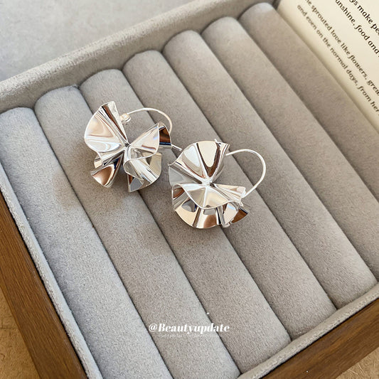 A廠【HE27599】褶皺亮面花朵籃子耳環歐美跨境冷淡風氣質耳環時尚耳環設計感小眾 25.07-2