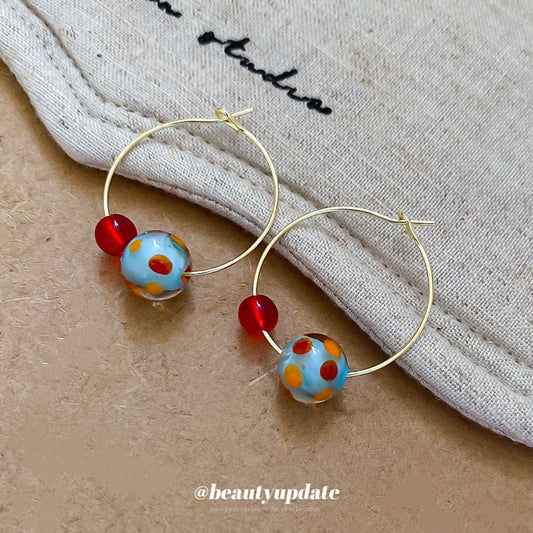 A廠【HE27658】樹脂圓形彩色圓球吊墜耳環清新時尚百搭耳圈耳環耳環設計感小眾女 25.07-2