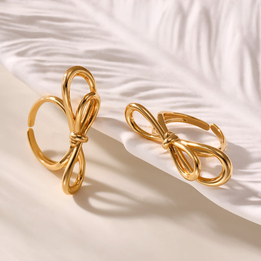 B廠【A776】歐美ins小眾設計蝴蝶結開口戒指不鏽鋼材質18k鍍真金不掉色 25.07-2