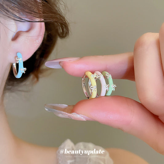 A廠【HE27673】蝴蝶結幾何圓形滴油耳環小清新甜美氣質耳環時尚小眾設計感耳飾女 25.07-2