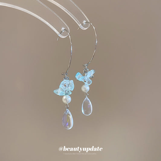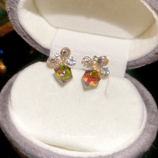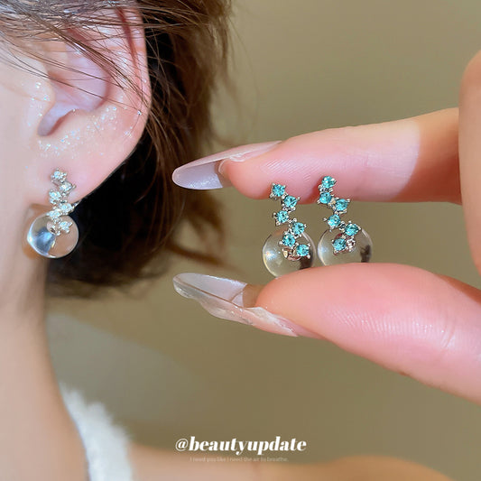 A廠【HE27705】925銀針鑲鑽水晶吊墜耳環夏日冰透簡約百搭氣質耳環輕奢高級感耳飾女 25.07-2