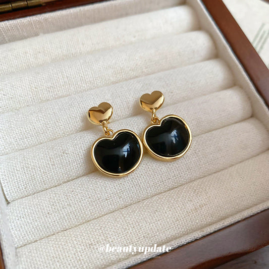 A廠【HE27684】925銀針樹脂愛心吊墜耳環復古時尚小眾法式耳環輕奢高級感百搭耳環女 25.07-2