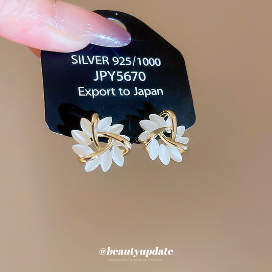 A廠【HE27712】18k真金電鍍925銀針貓眼石旋渦花形耳環宮廷風耳環輕奢高級感耳飾女 25.07-2
