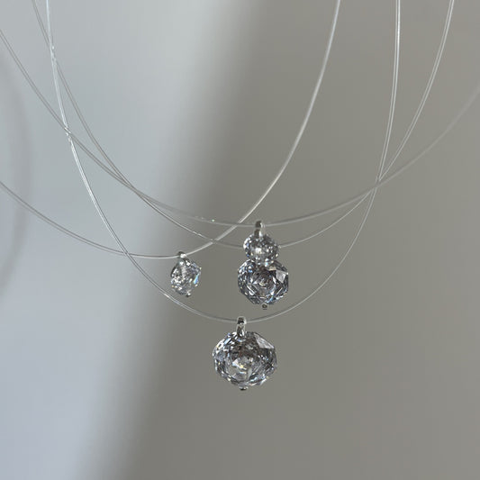 F廠【DQ2212N】S925純銀精緻玫瑰切閃鑽石耳機女人魚淚隱形魚線百搭鎖骨鏈 25.07-4