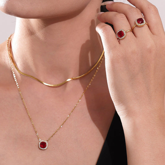 B廠【TXP341】新款車厘子吊墜項鍊手鍊手鍊套裝不銹鋼鍍18k真金歐美百搭首飾 25.08-1